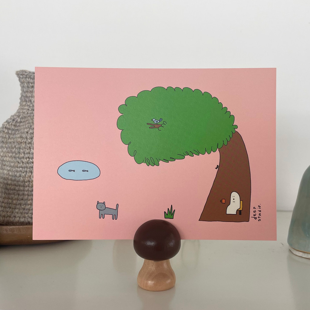 쿠쿠가 사는 나무집과 고양이와 물고기.